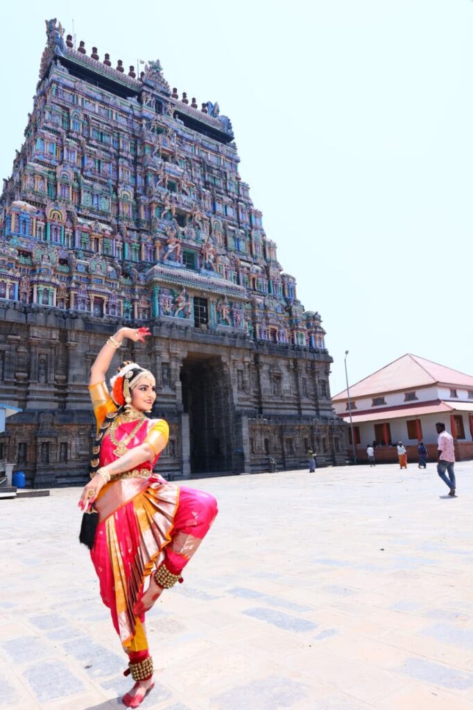 Traditional Bharatanatyam training including adavus, theory, repertoire, nattuvangam basics, and performance practice.